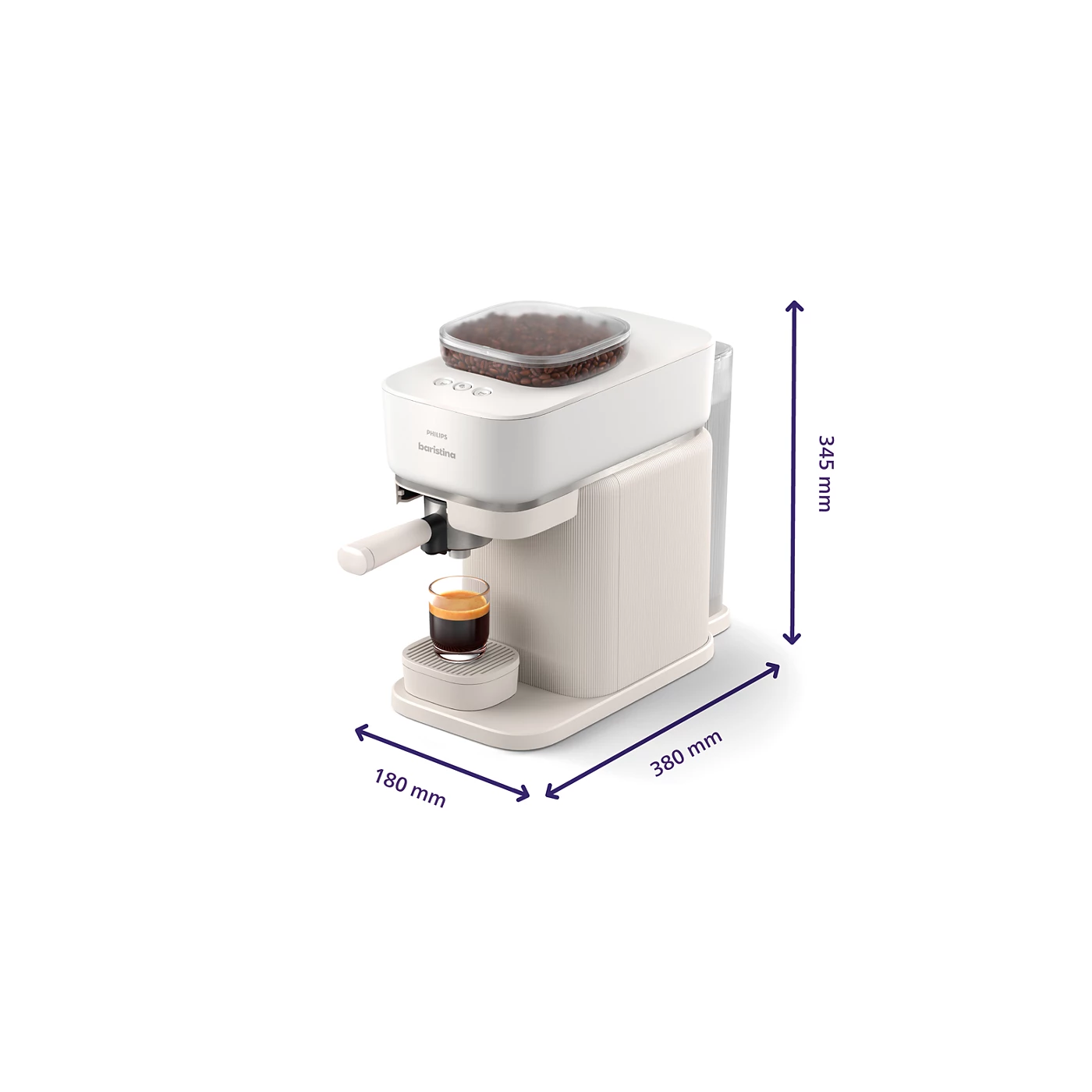 Swipe the handle to automatically grind, dose, tamp, and extract aromatic coffee—ready in just one minute. A 16‑bar pump delivers rich flavor, while BeanSync Technology adjusts grind size to match roast level. The low‑temperature ceramic grinder preserves pure taste. Choose from four drinks: espresso, extra espresso, long brew, or extra‑long brew. The used puck pops out easily—just rinse or wipe the portafilter to clean.